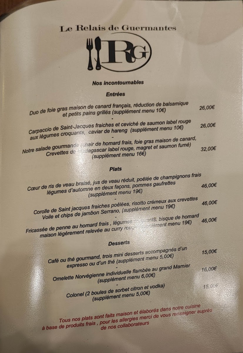 At Restaurant Le Relais De Guermantes, the menu is a refined showcase of French culinary tradition, blending classic flavors with thoughtful presentation. Starters like the Foie Gras Figue Maison and Fois Gras Maison demonstrate the kitchen’s mastery, offering rich, velvety textures balanced by subtle sweetness. Main courses are equally compelling, with carefully prepared dishes that honor seasonal ingredients and French technique. Desserts stand out as a true highlight, particularly the Moelleux Chocolat, whose molten center and deep chocolate flavor linger memorably, and the delicate Meringue, light yet satisfying, providing the perfect finish to a meticulously curated meal. The menu’s attention to detail, from flavor pairings to portion balance, ensures a harmonious dining experience that is both elegant and approachable, leaving a lasting impression for those seeking a taste of authentic French cuisine in Guermantes.